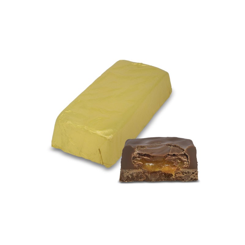 Κεράσματα τυλιχτά, σε σχήμα μακρόστενο, με σοκολάτα γάλακτος και γέμιση καραμέλας toffee. Μπορείτε να τοποθετήσετε αυτοκόλλητο με την επωνυμία σας, ώστε να δώσετε τη δική σας ταυτότητα. Η κάθε συσκευασία περιλαμβάνει περίπου 120 τεμάχια.