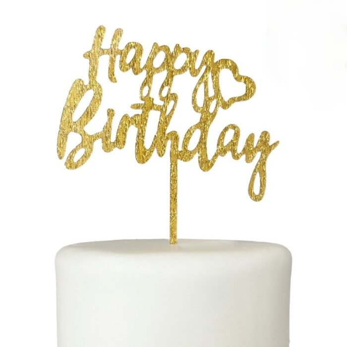 Πικ Επιγραφή Happy Birthday Χρυσό Με Καρδιά 14.5x11cm