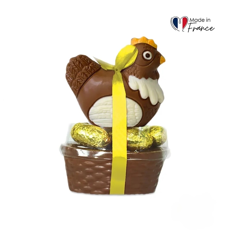 Σοκολατένιο καλάθι με κότα της εταιρείας Rohan, από σοκολάτα γάλακτος βασισμένη σε αγνό βούτυρο κακάο.